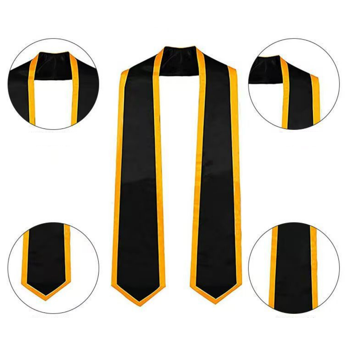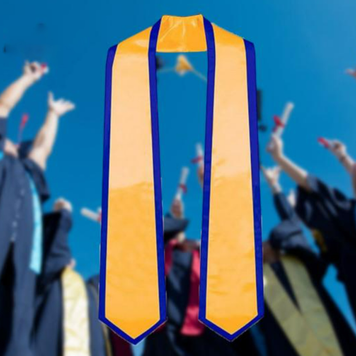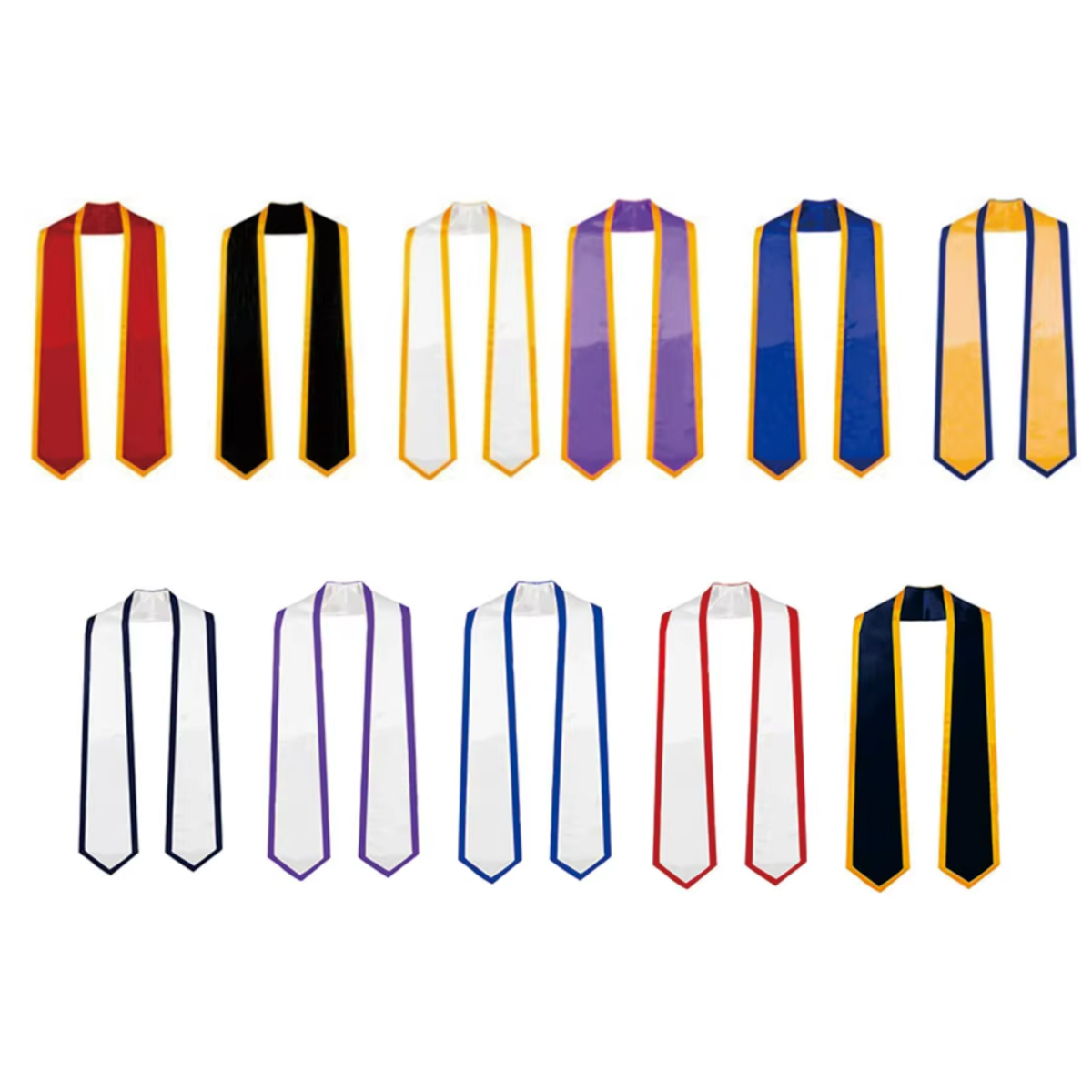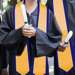 Celebrate academic achievements in style with this satin graduation honor stole, designed for use in commencement ceremonies, academic awards, and institutional recognition. Crafted from smooth, high-sheen satin fabric with elegant contrast edge trim, it drapes comfortably over graduation gowns and adds a distinguished touch to any ceremony. Available in a wide range of classic and vibrant colors, it represents school pride, organizational affiliations, or levels of distinction. The angled ends offer a polished finish, and the smooth surface is suitable for embroidery or heat-transfer logos, mascots, or custom messages. Perfect for universities, honor societies, cultural groups, or event commemorations.